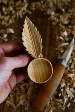 A highly detailed usable piece of wood art inspired by the wild Cherry tree and modelled on a leaf from a young cherry tree I planted on my land!
