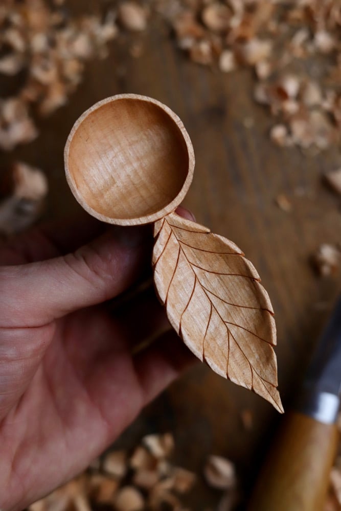 A highly detailed usable piece of wood art inspired by the wild Cherry tree and modelled on a leaf from a young cherry tree I planted on my land!