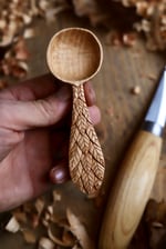 Entirely hand Carved by knife from some beautiful naturally fallen wild cherry wood that is a lovely golden colour