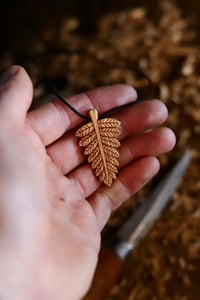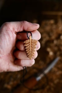 A lovely highly detailed piece of wearable wood art inspired by the Forest Fern