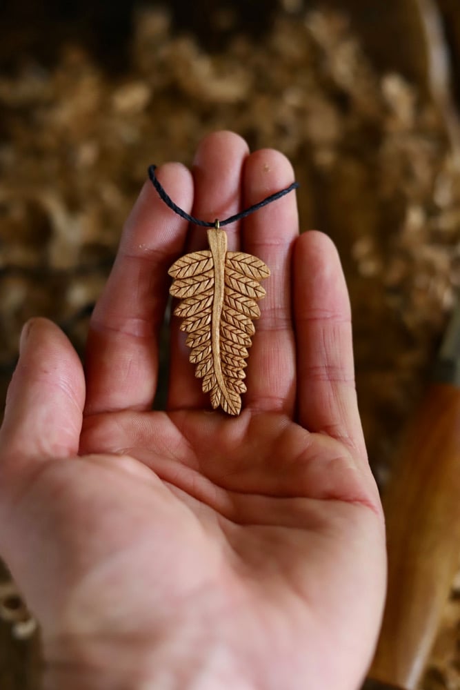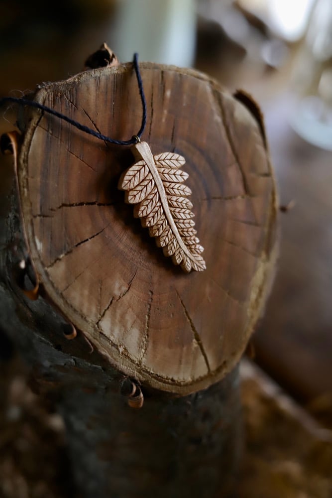 A lovely highly detailed piece of wearable wood art inspired by The Flowing Forest Ferns