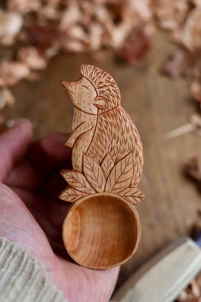 A beautiful Unique and extremely detailed piece of Usable wood art work that would be sure to be appreciated by any nature, Hedgehog or coffee lover!