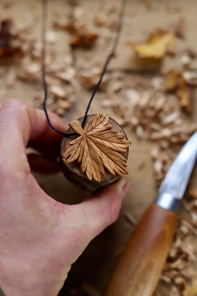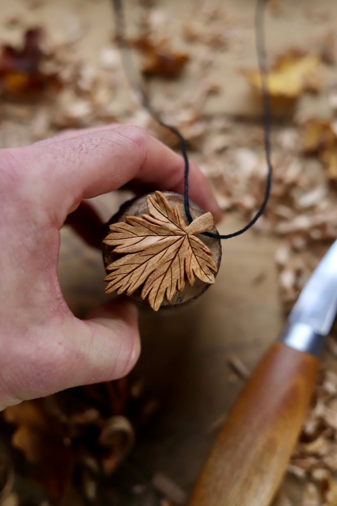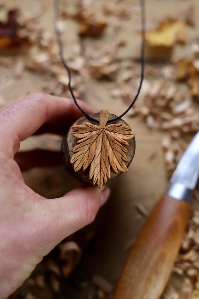 The Maple Leaf Pendant a wearable Piece of Highly detailed wood art Inspired by Nature!