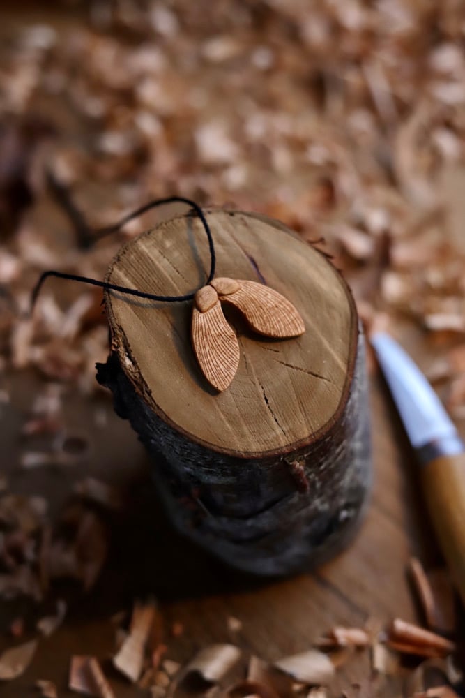 A unique Hand made wearable piece of wood art Inspired by the beautiful Maple Seed from