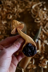 A beautiful delicate and detailed piece of usable wood art work that would be sure to be appreciated by any mushroom, nature or coffee lover!