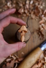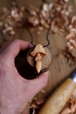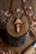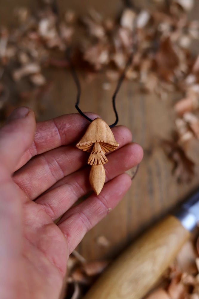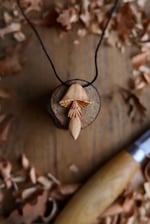 A Handmade Piece of Highky detailed wearable Wood art inspired by the parasol Mushroom of the woods!