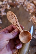 Entirely hand Carved by knife from beautiful naturally fallen wild cherry wood that is a beautiful colouration