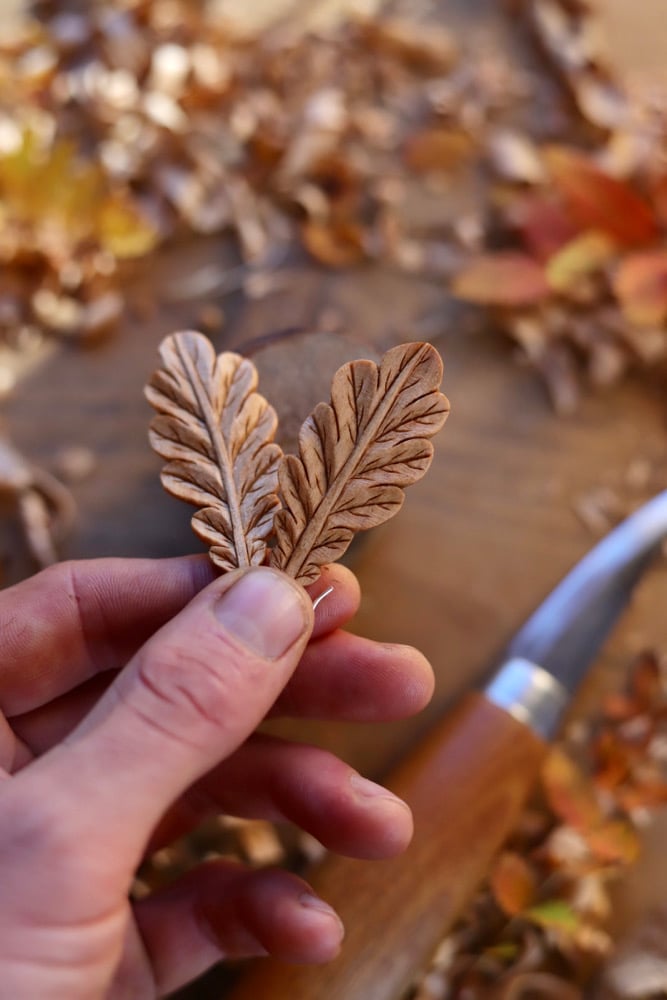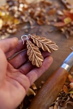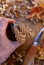A beautiful delicate and highly detailed pair of earrings inspired by the majestic oak tree and modelled on a real leaf from an oak tree I planted outside my Carving workshop!