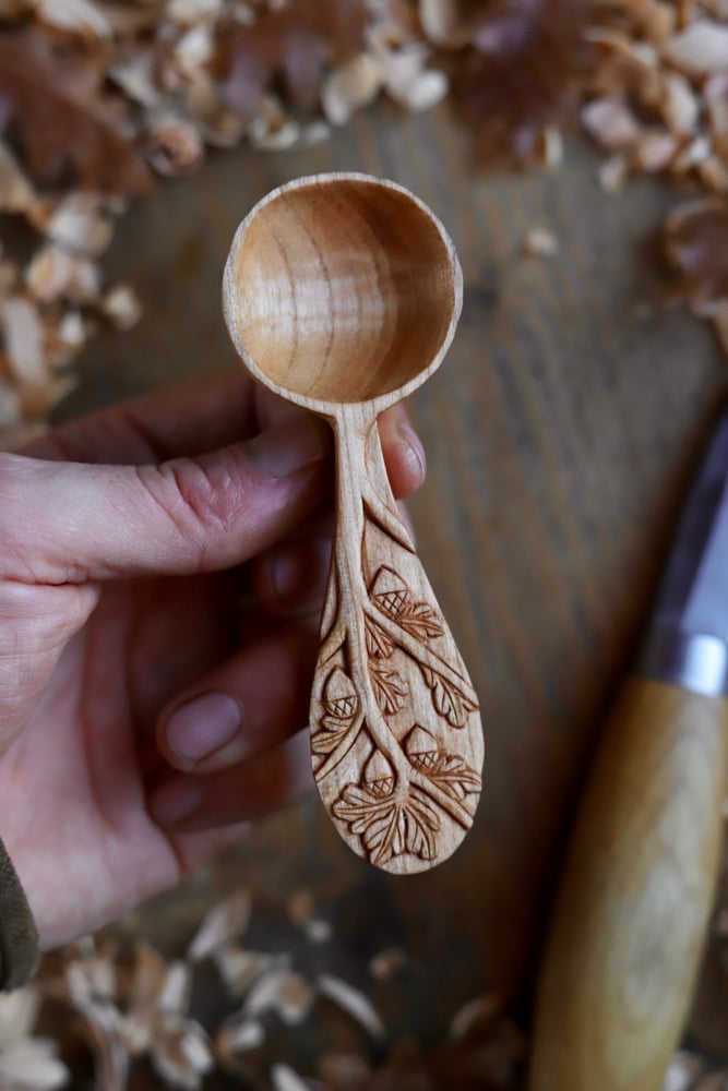 A beautifully delicate and highly detailed scoop inspired by the mighty oak tree, with out a doubt one of the most intricate designs I have ever made with the tiny acorns and leafs!