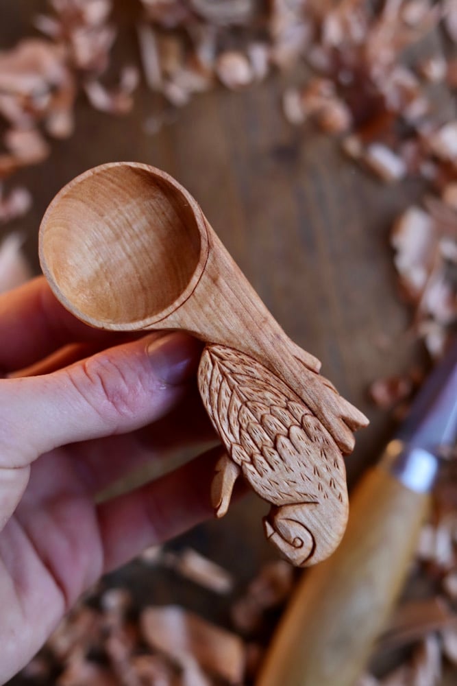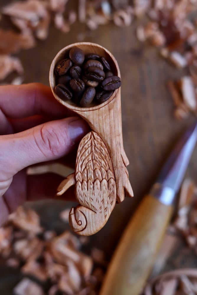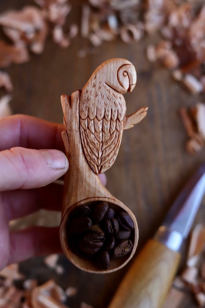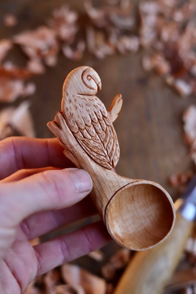 A Functional Piece of Fine art Wood Work, Hand made with love, Inspired Nature! My first ever Owl Scoop Created!