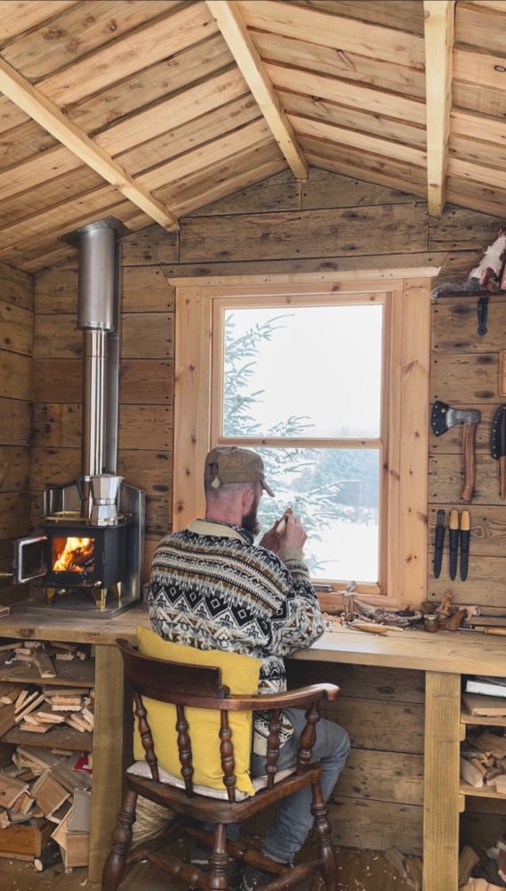 Week 2- 1x Tagged in a Post carousel (4-7photos) showing myself at work in my workshop with all tools visible within the post, shots may include- Myself Carving, Inside workshop shots, tools on wall, works in progress, atmospheric cosy fire, finished projects, close ups of tools in use, outside workshop scenics etc.