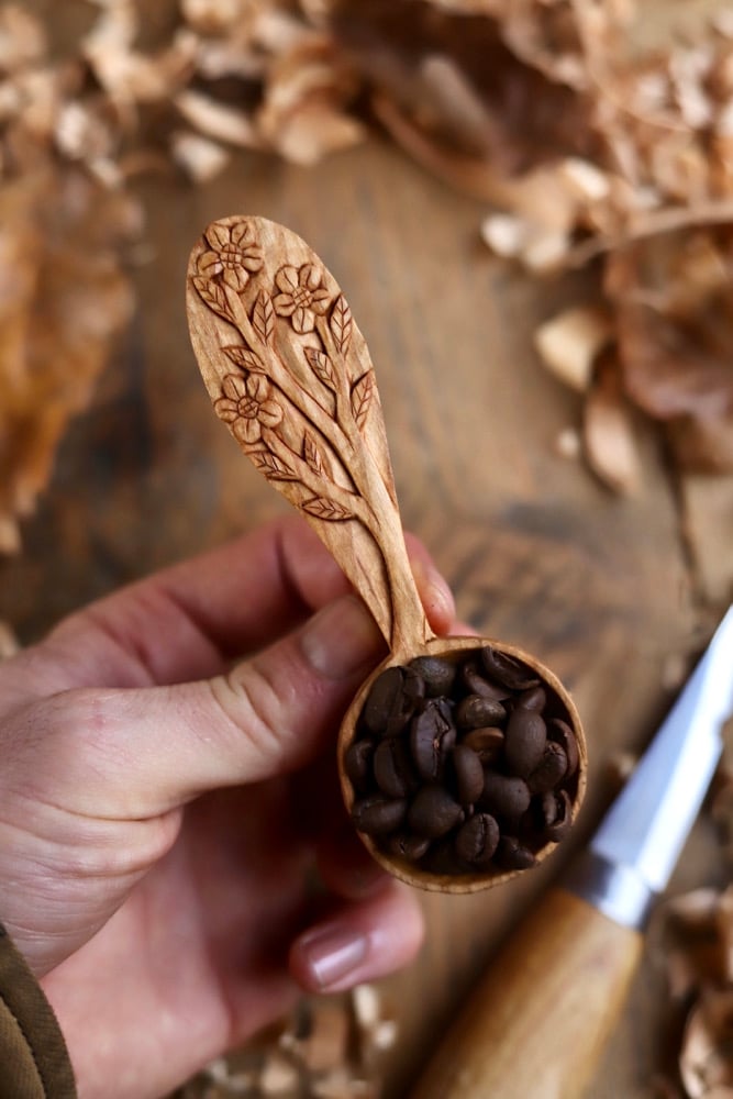 A beautiful, unique piece of usable wood art work that would be sure to be appreciated by any nature or coffee lover!
